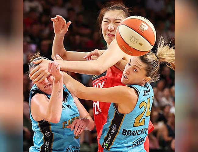 پرتھ:کینبرا اور لنکس کے درمیان ویمنز باسکٹ بال میچ کا منظر