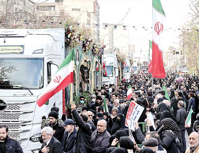 تہران:مظاہروں میں جاں بحق ہونیوالے سکیورٹی اہلکاروں کی میتیں نماز جنازہ کیلئے لائی جارہی ہیں