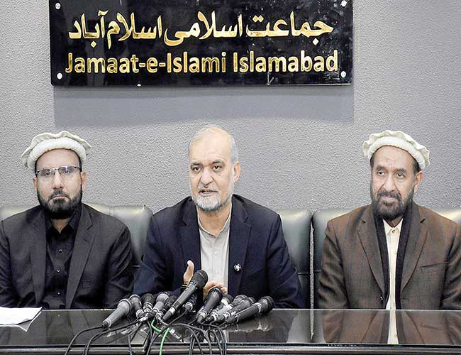 اسلام آباد:امیر جماعت اسلامی حافظ نعیم الرحمن پریس کانفرنس کرتے ہوئے
