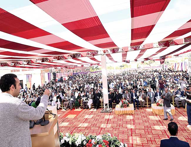 مٹھی:چیئرمین پیپلز پارٹی بلاول بھٹو تھر انسٹی ٹیوٹ آف انجینئرنگ سائنس اینڈ ٹیکنالوجی کی افتتاحی تقریب سے خطاب کر رہے ہیں