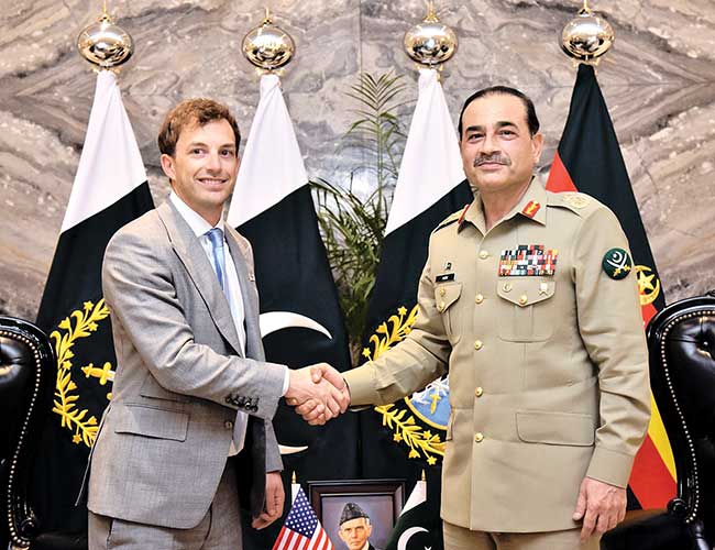 راولپنڈی:فیلڈمارشل عاصم منیر سے ورلڈ لبرٹی فنانشل کے سی ای او مصافحہ کرتے ہوئے