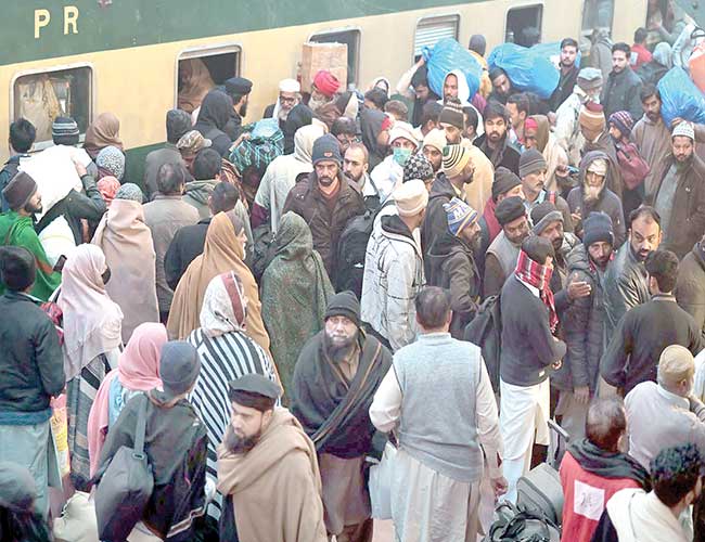 لاہور ریلوے سٹیشن پر ٹرینیں لیٹ ہونے کی وجہ سے رش لگا ہوا ہے