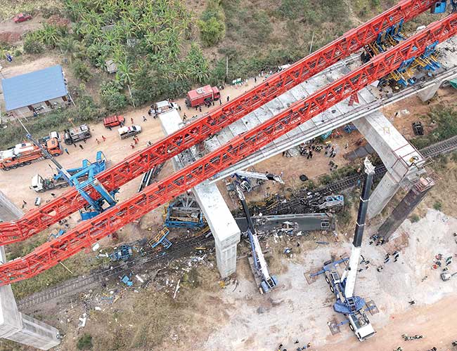 تھائی لینڈ میں تعمیراتی کرین گرنے سے مسافر ٹرین کی بوگیاں الٹی پڑی ہیں
