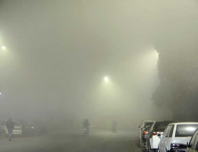 لاہور:بدھ کی رات شملہ پہاڑی چوک میں شدید دھند کا منظر