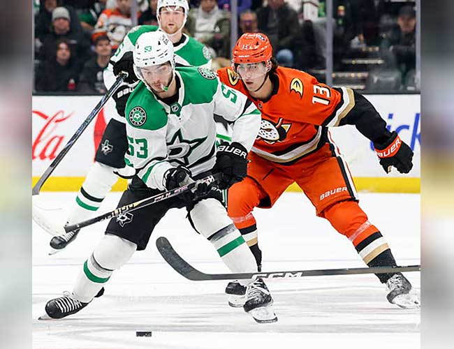 کیلیفورنیا:ڈلاس سٹارز اور ڈکس کے درمیان آئس ہاکی میچ کا منظر