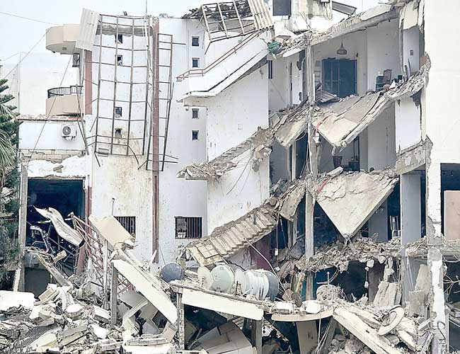لبنان کے جنوبی ساحلی شہر صورپر اسرائیلی فضائی حملے کے بعد تباہی کا منظر