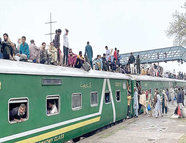 عید منانے گھروں کو جانے والوں کا شاہدرہ سٹیشن پر رش، لوگ ٹرین کی چھت پر بھی سوار ہیں