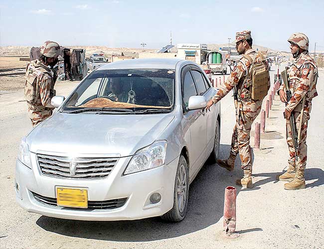 چمن:سکیورٹی اہلکار پاک افغان بارڈر کے قریب گاڑی کی تلاشی لیتے ہوئے