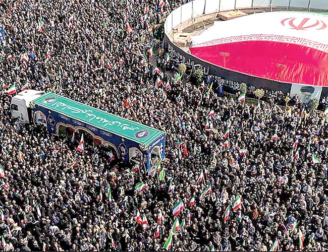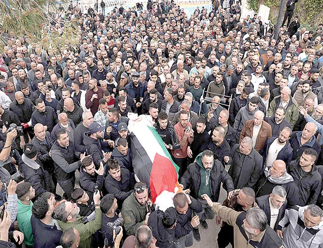 مقبوضہ بیت المقدس:ایرانی میزائل حملے میں جاں بحق فلسطینی خاتون کا جنازہ لے جایا جارہا ہے
