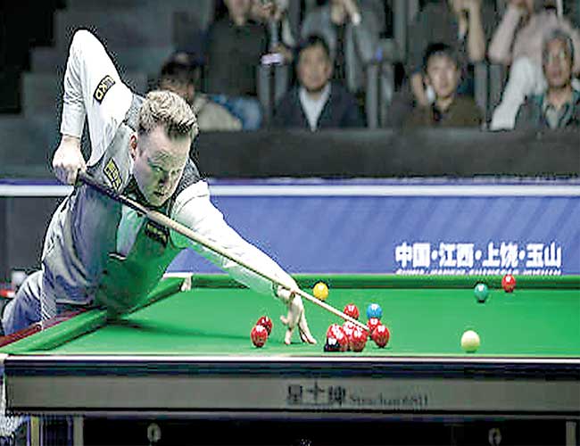 شنگراؤ:انگلینڈ کے رونی اوسلیوان کیخلاف ورلڈ اوپن سنوکر کے میچ میں انگلش کیوئسٹ شان مرفی شاٹ کھیلتے ہوئے