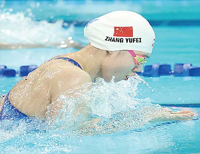 شینزن:چائنہ اوپن سوئمنگ چیمپئن شپ میں ژانگ یوفی مقابلہ کرتے ہوئے