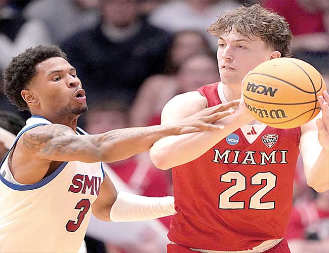 اوہائیو:مستانگز اور میامی ریڈ ہاکس کے درمیان باسکٹ بال میچ کا منظر
