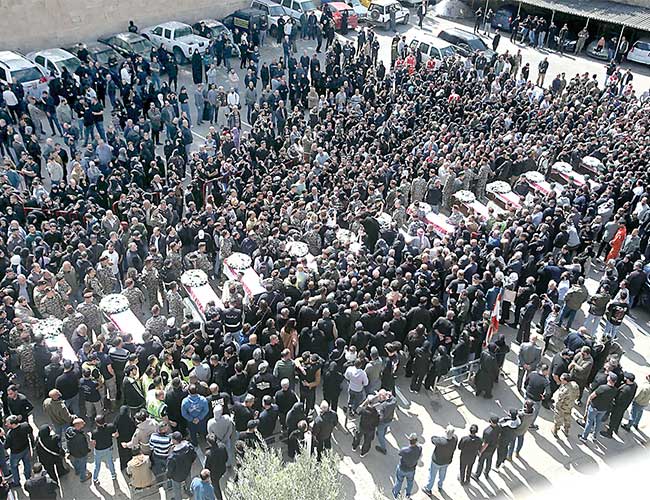 لبنان میں اسرئیلی حملے میں شہید سکیورٹی اہلکاروں کے جنازے میں بڑی تعداد میں شہری شریک ہیں
