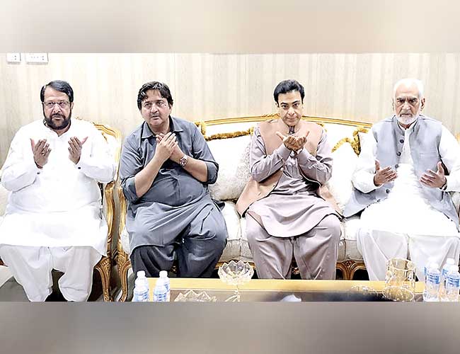 لاہور:سابق وزیراعلیٰ حمزہ شہباز سپیکر پنجاب اسمبلی ملک احمد خان سے انکی ہمشیرہ کے انتقال پر تعزیت کے بعد فاتحہ خوانی کرتے ہوئے