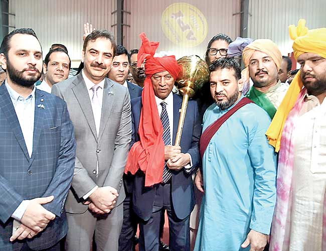 کراچی:گورنر سندھ نہال ہاشمی کے ساتھ محمد عمر و دیگر پہلوانوں کی ملاقات کے موقع پر گروپ فوٹو