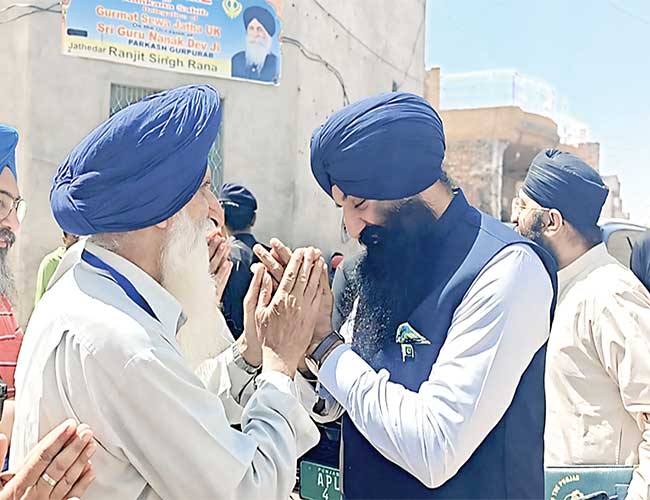 لاہور:وزیر اقلیتی امور رمیش سنگھ گورودوارہ سری کیارہ صاحب سکھ یاتریوں سے ملتے ہوئے