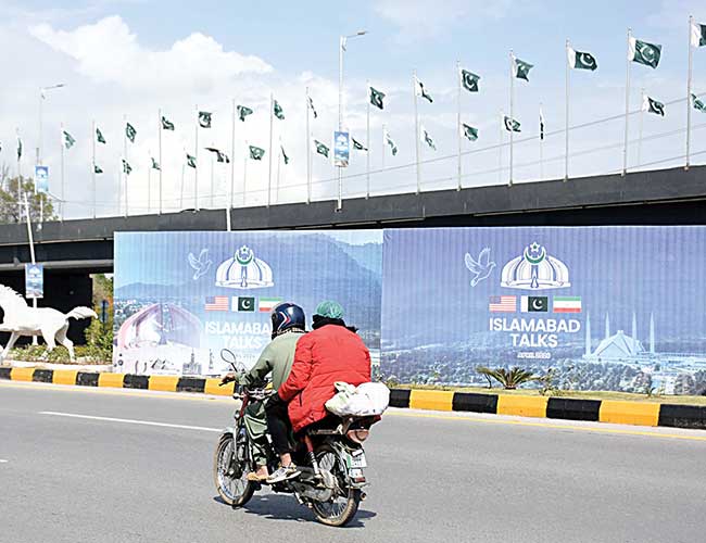 اسلام آباد :موٹر سائیکل سوار ’’ اسلام آباد ٹاکس ‘‘ بل بورڈز کے سامنے سے گزر رہے ہیں