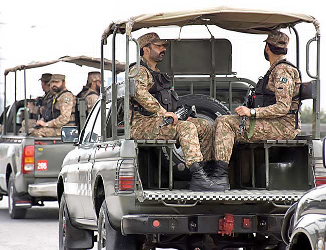 اسلام آباد:ایران، امریکہ مذاکرات کے دوران پاک فو ج کے دستے شاہراہ پر گشت کرتے ہوئے