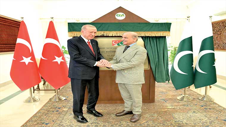 باہمی تجارت کا حجم 5ارب ڈالر تک بڑھانے پر اتفاق کیا گیا جبکہ تعلقات سٹریٹجک شراکت میں تبدیل کرنیکا بھی فیصلہ ہوا۔ترک صدر نے کہا اقوام متحدہ کی قراردادوں کے مطابق مسئلہ کشمیر حل کیا جائے ۔وزیراعظم شہباز شریف نے کہا سرمایہ کاروں کو سہولتیں دیں گے ،ترک کمپنیاں خصوصی اقتصادی زونز بنائیں گی،معاہدوں پر عملدرآمد کیلئے ٹیم کے طور پر کام کرینگے ۔ترکیہ کے صدر کے وزیراعظم ہائوس پہنچنے پر باوقاراستقبالیہ تقریب ہوئی،وزیراعظم شہبازشریف نے ترک صدر کا والہانہ گرمجوشی سے استقبال کیا،دونوں رہنمائوں نے روایتی انداز میں مصافحہ کیا،اس موقع پر ترک صدر کو مسلح افواج کے دستے نے گارڈ آف آنر پیش کیا،اس موقع پر دونوں ممالک کے قومی ترانے بھی بجائے گئے ۔شہبازشریف نے ترک صدرسے اپنی کابینہ کے ارکان جبکہ رجب طیب اردوان نے اپنے وفد کے ارکان کا تعارف کرایا۔ ترک صدر نے وزیراعظم ہائوس کے احاطے میں پودا بھی لگایا۔ ترک صدر نے آرمی چیف جنرل سید عاصم منیر سے گرمجوشی سے مصافحہ کیا۔ پاک فضائیہ کے جے ایف 17 تھنڈر اور ایف 16 طیاروں نے خصوصی فلائی پاسٹ کرتے ہوئے مہمان کو سلامی دی۔ترک صدر رجب طیب اردوان کے ہمراہ ترک خاتون اول امینہ اردوان بھی پہنچیں، امینہ اردوان نے پاکستان اور ترکیہ کے درمیان بالخصوص تعلیمی شعبے میں گہری دوستی کو اجاگر کرتے ہوئے معارف انٹرنیشنل سکول ایچ ایٹ کا دورہ کیا جو ترک معارف فائونڈیشن کے قائم کردہ تعلیمی اداروں کے عالمی نیٹ ورک کا حصہ ہے ۔وزیراعظم شہباز شریف اور ترکیہ کے صدر رجب طیب اردوان نے اسلام آباد میں اعلیٰ سطح کے سٹریٹجک تعاون کونسل کے 7 ویں اجلاس کی مشترکہ صدارت کی،اجلاس کے بعد وزیراعظم ہائوس میں منعقدہ دستخطوں کی باضابطہ تقریب میں وزیراعظم شہبازشریف اور ترکیہ کے صدر رجب طیب اردوان نے شرکت کی،وزیراعظم پاکستان اور ترکیہ کے صدر نے پاکستان اور ترکیہ کے درمیان تزویراتی شراکت داری کو مزید گہرا کرنے ، متنوع بنانے اور ادارہ جاتی شکل دینے کے لئے پاکستان ترکیہ ایچ ایل ایس سی سی کے ساتویں اجلاس کے مشترکہ اعلامیہ پردستخط کئے ۔