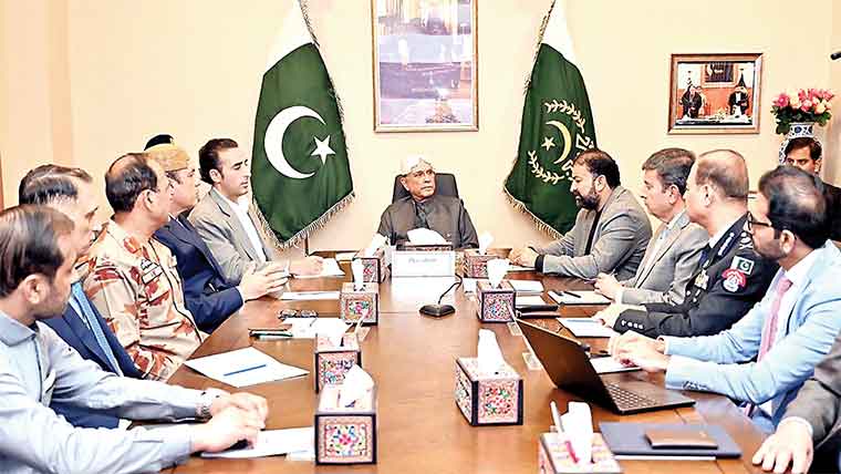 صدر مملکت نے کہا کہ بلوچستان کے لوگوں سے دلی لگا ئواور دیرینہ تعلقات ہیں۔ بحیثیت پاکستانی قومی یکجہتی کے ذریعے وطن عزیز کو آگے لے کر جانا ہے ، ہم سب کو ان کا حق دینا چاہتے ہیں، حقوق چھیننے پر یقین نہیں رکھتے بلکہ انہیں دے کر عوام کا دل جیتیں گے ، بلوچستان اور عوامی فلاح و بہبود کے اقدامات کو بار آور بنایا جائے گا اور ایسے فیصلے کیے جائیں گے جو تاریخ میں سنہرے الفاظ میں یاد رکھے جائیں گے ۔ عید کے بعد بلوچستان میں کیمپ لگائوں گا اور جملہ مسائل اور تجاویز تفصیل سے سنوں گا۔ اپوزیشن لیڈر میر یونس عزیز زہری نے وزیر اعلیٰ بلوچستان میر سرفراز بگٹی کے اقدامات کو سراہا اور مکمل تعاون کی یقین دہانی کرائی۔ ملاقات میں نیشنل پارٹی کے سربراہ ڈاکٹر عبدالمالک بلوچ، پاکستان مسلم لیگ کے پارلیمانی لیڈر میر سلیم خان کھوسہ، عوامی نیشنل پارٹی کے پارلیمانی لیڈر انجینئر زمرک خان اچکزئی اور جماعت اسلامی کے رکن میر عبدالمجید بادینی نے بھی شرکت کی۔ قبل ازیں کوئٹہ میں صدر مملکت کی زیر صدارت امن و امان کی صورتحال پر اجلاس ہوا، اجلاس میں بلاول بھٹو نے خصوصی شرکت کی، وزیر اعلیٰ بلوچستان میر سرفراز بگٹی نے امن و امان کی صورتحال پر بریفنگ دی ، قائم مقام گورنر بلوچستان کیپٹن ریٹائرڈ عبدالخالق اچکزئی، چیف سیکرٹری شکیل قادر خان، آئی جی پولیس معظم جاہ انصاری اور اعلی ٰحکام نے شرکت کی۔اجلاس سے خطاب میں صدر زرداری نے کہا کہ دہشت گرد قوم کو تقسیم کرنا چاہ رہے ہیں، دہشت گرد عناصر کو ہر قیمت پر شکست دیں گے دہشت گردی کے خلاف جنگ جیتنی ہے ، انسداد دہشت گردی ونگ کو جدید اسلحہ فراہم کریں گے ،صدر مملکت نے کہا کہ بلوچستان کی ترقی اور پائیدار امن چاہتے ہیں، بلوچستان کے ہر بچے کو سکول میں چاہتے ہیں، جدید ٹیکنالوجی سے بچوں کو روشناس کروانا وقت کی ضرورت ہے۔