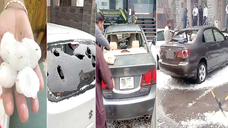 اسلام آباد میں گولوں کیطرح اولے پڑے ،گا ڑیوں کے شیشے ٹوٹ گئے