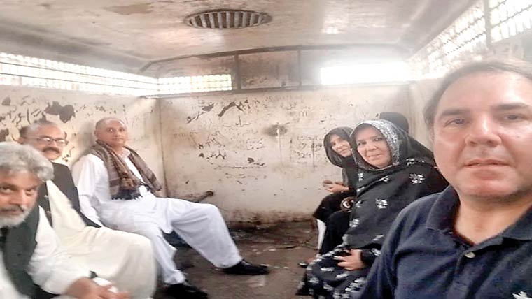 جس پر پولیس نے ان کو وارنٹ گرفتاری دکھائے اور قیدی وین اندر طلب کر لی ۔ جس کے بعد بانی پی ٹی آئی کی بہنوں علیمہ خان، عظمیٰ خان، نورین خان، کزن قاسم زمان، اپوزیشن لیڈر عمر ایوب، پنجاب اسمبلی میں اپوزیشن لیڈرا حمد بھچر، صاحبزادہ حامد رضا کو حراست میں لے کر قیدی وین میں بٹھایا۔ زر تاج گل سیمابیہ طاہر کو حراست میں نہیں لیا گیا، حراست سے قبل میڈیا سے گفتگو کرتے ہوئے اپوزیشن لیڈر عمر ایوب کا کہنا تھا کہ یہ دیکھ لیں لیڈر آف دی اپوزیشن کو گرفتار کررہے ہیں ،محسن نقوی کو میں نے قومی اسمبلی میں بیٹھنے نہیں دیا، میں دیکھتا ہوں شہباز شریف کیسے آئے گا ہم ان کو اٹھا اٹھا کر بھگائیں گے ، سب کو دیکھ لوں گا یہ توہین عدالت کررہے ہیں، علیمہ خان کا کہنا تھا کہ یہ سب کچھ عمران خان کو آئیسولیٹ کرنے کے لیے ہو رہا ہے ،انکے بچوں،فیملی اور ڈاکٹروں سے ملاقات بند کر دی گئی ہے ،علیمہ خان نے کہا یہ دوسری مرتبہ ایسا کررہے ہیں ہمیں اڈیالہ سے اٹھاتے ہیں اور موٹروے پر چھوڑ دیتے ہیں، ہم نے کوئی قانون نہیں توڑا۔