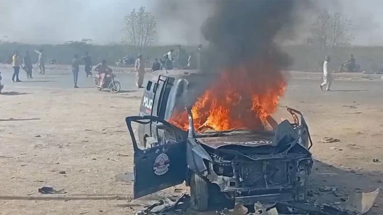 کراچی: متنازعہ نہروں کیخلاف احتجاج، مظاہرین اور پولیس میں جھڑپیں، 2 گاڑیاں نذر آتش