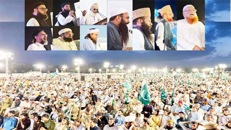 افواج پاکستان نے دنیا میں اپنی برتری کا سکہ جما دیا، جارحیت کے مرتکب بھارت کو جواب دینے پر افواج پاکستان کو خراج تحسین پیش کرتے ہیں،پاکستان اسلام کے نام پر بنا، اس کے دفاع کیلئے ہم متحد ہیں، مودی نے اس خطے کو تباہی کے دہانے پر کھڑا کیا، اگر بھارت نے مودی سے چھٹکارا حاصل نہ کیا تو انڈیا تباہ ہوجائے گا، آپریشن بنیان مرصوص تاریخ میں جرات و بہادری کے طور پر یاد رکھا جائے گا۔ ان خیالات کا اظہار مفتی تقی عثمانی، مفتی منیب الرحمن، مفتی نعمان نعیم، علامہ راشد محمود سومرو و دیگر نے کیا۔ باغ جناح میں منعقد کی گئی کانفرنس میں ہزاروں شہریوں نے شرکت کی۔ شرکا نے قومی پرچم تھام رکھے تھے اور افواج پاکستان کو زبردست کامیابی پر خراج تحسین پیش کیا۔