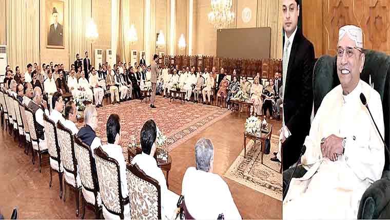 ان خیالات کا اظہار انہوں نے ایوان صدر میں عید الا ضحی کے موقع پر پیپلز پارٹی کے رہنماؤں اور ورکرز سے ملاقات کے دوران کیا۔صدر مملکت نے کہا کہ ہمارے ورکرز ہماری قوت ہیں جو ہر مشکل وقت میں پارٹی کے ساتھ کھڑے رہے ، ملک کو زرعی شعبے کی بنیاد پر ترقی دینے کی ضرورت ہے ،کسانوں کو سپورٹ کرکے ملکی معیشت کو ترقی دے سکتے ہیں۔ زرداری نے بھارت کی بڑھتی شدت پسندی پر بھی تشویش کا اظہار کرتے ہوئے کہا کہ بھارت میں اقلیتوں خصوصاً مسلمانوں اور عیسائیوں کو تعصب اور ظلم کا سامنا ہے ۔ صدر نے کہا کہ مسلمان برصغیر میں تاریخی، مذہبی اور ثقافتی جڑیں رکھتے ہیں۔ صدر مملکت نے ملکی ترقی و خوشحالی کیلئے مل کر کام کرنے کی ضرورت پر بھی زور دیا۔