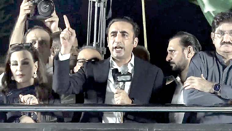انہوں نے کہا پاکستان میں کچھ لوگ صوبوں کے درمیان نفرتیں پھیلاتے ہیں، بھارت نے جب ہمارے دریا پر حملہ کیا تو یہ سیاسی یتیم کہاں غائب ہیں؟ ان کے پیچھے ہمیشہ سے بھارت رہا ہے جو پاکستان نہ کھپے اور سندھ نہ کھپے کے نعرے لگاتے ہیں، اب جب الیکشن ہوں گے تو ان سیاسی یتیموں کو ہم ایک بار پھر عبرتناک شکست دیں گے ۔ بلاول بھٹو کا کہنا تھا ہم نے وزیراعظم کے کہنے پر چار سے پانچ ممالک کے دورے کئے ، ہم پاکستان کاپیغام یورپ،امریکہ اور برسلزمیں لیکرگئے ۔انہوں نے کہا جس اندازسے ہماری فضائیہ، پاک فوج نے بھارت کو شکست دی اس پر ہم فخر کرتے ہیں، میدان میں جنگ ہارنے والے بھارت نے سفارتی میدان میں ہمیں شکست دینے کی کوشش کی لیکن ہم نے سفارتی سطح پر بھی بھارت کو شکست دیدی ہے ، ہم نے بیانیہ کے لحاظ سے جنگ جیت لی ہے ۔چیئرمین پیپلزپارٹی کا کہنا تھا ہم سچ پر اور بھارت جھوٹ پر تھا، ہم نے ہر جگہ بھارت کومات دی ہے ، کشمیر کا مسئلہ ہم نے ہر دور میں اٹھایا ہے ، ذوالفقار بھٹو، محترمہ اور آصف علی زرداری نے کشمیر کا مقدمہ لڑا ہے ۔
