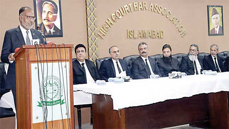 اسلام آباد ہائی کورٹ کوئی فیڈرل ہائی کورٹ نہیں ،یہاں پر ججز کی تعیناتیاں اسلام آباد سے ہونی چاہئیں۔وہ اسلام آباد ہائی کورٹ بار ایسوسی ایشن سے خطاب کررہے تھے ،اس موقع پر اسلام آباد ہائی کورٹ بار کے صدر واجد علی گیلانی، سیکرٹری منظور احمد ججہ، ڈسٹرکٹ بار کے صدر چودھری نعیم علی گجر، قاضی رفیع الدین بابر، ایڈیشنل اٹارنی جنرل راشد حفیط، سابق ڈپٹی اٹارنی راشد حنیف اور دیگربھی موجود تھے ،جسٹس(ر)شوکت عزیز صدیقی نے مزیدکہا اسلام آباد ہائی کورٹ کی موجودہ بلڈنگ جس جگہ پر ہے وہ 2012 میں ہم نے لی ، این آئی آر سی کے چھ میں سے پانچ بینچز کو ویڈیو لنک کے ساتھ منسلک کر دیا ہے صرف پشاور کا بینچ باقی ہے ، اسلام آباد ہائی کورٹ بارکے صدر واجدعلی گیلانی نے کہا شوکت صدیقی نڈر اور دلیر شخص ہے ، قانون کی بالادستی کیلئے ہائیکورٹ کے چیف جسٹس کا عہدہ بھی جوتے کی نوک پر رکھا، منظوراحمد ججہ نے شوکت عزیز صدیقی سے ہمیشہ وکلاء کو سیکھنے کا موقع ملا ۔اختتام پراسلام آباد ہائیکورٹ بار کی طرف سے جسٹس (ر)شوکت عزیز صدیقی کو شیلڈ پیش کی گئی۔