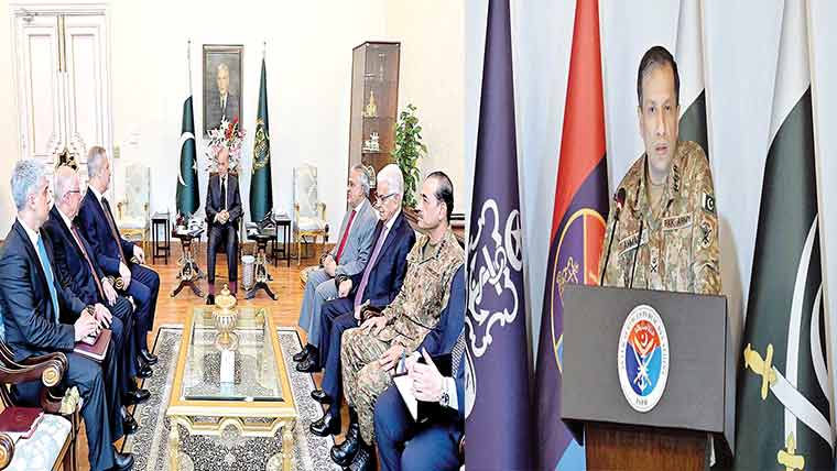 اسلام آباد(نامہ نگار،وقائع نگار)پاکستان اور ترکیہ نے باہمی تعلقات کو سٹریٹجک شراکت داری میں تبدیل کرنیکا عزم ظاہر کرتے ہوئے قریبی روابط بڑھانے اور باہمی تجارت 5ارب ڈالر تک وسعت دینے پر اتفاق کیا ہے۔ ترک وزیر خارجہ ہاکان فیدان اور قومی دفاع کے وزیر یاسر گلر نے وزیراعظم ، فیلڈ مارشل ،ایئرچیف اور وفاقی وزرا سے ملاقاتیں کیں اور توانائی، ثقافت، تعلیم اور بنیادی ڈھانچے میں بھی تعاون بڑھانے کا عزم ظاہر کیا۔شہباز شریف سے ملاقات کے دوران نائب وزیراعظم اسحاق ڈار، وزیر دفاع خواجہ آصف،فیلڈ مارشل سید عاصم منیر، قومی سلامتی کے مشیر لیفٹیننٹ جنرل عاصم ملک اور دیگر اعلیٰ حکام بھی موجود تھے ۔ شہباز شریف نے پاک ترکیہ تعلقات کو سٹریٹجک شراکت داری میں تبدیل کرنے کے پاکستان کے پختہ عزم کا اعادہ کیا،وزیر اعظم نے تیزی سے بدلتے ہوئے علاقائی اور عالمی ماحول بالخصوص غزہ اور ایران کے تناظر میں دونوں فریقوں کے درمیان قریبی روابط کی ضرورت پر زور دیا۔ انہوں نے ایک بار پھر بھارت کے ساتھ حالیہ تنازع کے دوران پاکستان کی مستقل حمایت پر ترک قوم اور قیادت کا تہہ دل سے شکریہ ادا کیا۔ وزیر اعظم نے 5 بلین امریکی ڈالرز کے باہمی متفقہ ہدف کو حاصل کرنے کے لیے دو طرفہ تجارت کو بڑھانے کی دونوں ممالک کی جانب سے ٹھوس کوششوں کی ضرورت پر زور دیا۔ پاکستان کی سرمایہ کار دوست پالیسیوں پر روشنی ڈالتے ہوئے ، انہوں نے ترک کمپنیوں کو پاکستان میں اپنی سرمایہ کاری کا دائرہ بڑھانے کی دعوت دی اور ترکیہ کو پاکستان کی ساختی اصلاحات اور اقتصادی ترقی میں اشتراک کی دعوت دی۔