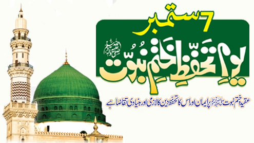 7 ستمبر یوم تحفظ ختم نبوتﷺ عقیدہ ختم نبوتﷺ پر ایمان اور اس کا تحفظ دین کا لازمی اور بنیادی تقاضا ہے
