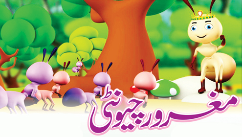 چند دن سکون سے گزرے تھے کہ ایک دن ملکہ چیونٹی دوسری چیونٹیوں کے ساتھ مل کر بڑا دانہ دیوار پر چڑھانے کی کوشش کر رہی تھی،لیکن وہ اتنا وزنی تھا کہ چڑھاتے چڑھاتے وہ تھک کر نڈھال ہو گئیں۔ابھی وہ ایک جگہ کھڑی ہوئی سانس درست کرنے کی کوشش کر رہی تھیں کہ اتفاق سے موٹی مغرورچیونٹی بھی ادھر آ نکلی اور انہیں ہانپتے کانپتے دیکھ کر ملکہ کا مذاق اڑاتے ہوئے غرورسے کہنے لگی’’ہونہہ! ایک معمولی سا دانہ تم لوگوں سے نہیں لے جایا جا رہا،میں ملکہ ہوتی تو پلک جھپکتے میں اوپر پہنچا دیتی۔‘‘ اپنی ملکہ کی توہین سن کر تما م چیونٹیاں غضبنا ک ہو گئیں اور اسے اپنے گھمنڈ کا سبق دینے کے لیے انہوں نے اس پر دانہ لڑھکانا چاہا ،لیکن ملکہ چیونٹی نے انہیں فوراً روک دیا اور بولی’’بہنو! ذرا صبر سے کا م لو،صبر کا پھل میٹھا اور غرور کا سر ہمیشہ نیچا ہوتا ہے۔اللہ پر بھروسہ رکھو وہ اس کے غرور کو بہت جلد خاک میں ملا دے گا‘‘۔چیونٹیاں اپنے غصے پر قابو پا کر پھر سے دانہ اوپر گھسیٹنے لگیں۔انہیں خاموشی سے اوپر جاتا دیکھ کر موٹی چیونٹی کا حوصلہ اور بڑھ گیا۔وہ سمجھی کہ ملکہ اور ا س کی ساتھ ڈر گئی ہیں۔اس لیے وہ ان کے پاس جا کے ملکہ کا اور بھی مذاق اڑانے لگی’’تم لوگ بیوقوف ہو جو ایسی کمزور اور مریل کو اپنی ملکہ بنایا ہے ۔یہ تو تمہارے ساتھ مل کر بھی ایک معمولی سا بوجھ نہیں گھسیٹ سکتی۔مجھے اپنی ملکہ بنا لو تو میں اس بوجھ کو اکیلے ہی اوپر پہنچا سکتی ہوں۔‘‘
