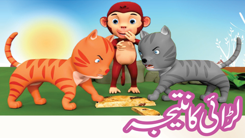 ایک دن کالی بلی گائوں میں چلی گئی۔وہ ایک گھر میں داخل ہوئی اور وہاں سے اسے گھی کی روٹی مل گئی۔اس نے پہلے کبھی گھی والی روٹی نہیں کھائی تھی،اس لیے گھی کی خوشبو اسے بے حد پسند آئی۔گائوں میں کتے بھی تھے اور وہ کتوں سے بہت ڈرتی تھی اس لیے وہیں بیٹھ کر کھانے کی بجائے روٹی اٹھا کر جنگل کی طرف بھاگی۔اس نے سوچا کہ یہ گھی کی روٹی تو بڑی مزیدار ہے،اس لیے یہ میں اکیلے ہی کھائوں گی۔کالی بلی جونہی جنگل میں داخل ہوئی اورنج بلی دوڑی دوڑی اس کے پا س آئی۔اسے بھی گھی کی خوشبو پسند آئی تھی۔اورنج بلی نے پوچھا’’کالی بہن یہ روٹی کہاں سے لائی ہو‘‘؟کالی بلی بولیـ؛ میں آج گائوں گئی تھی وہاں مجھے یہ روٹی ملی ہے۔گائوں میں کتے بھی تھے میں ان سے بچتی ہوئی مشکل سے یہاں آئی ہوں۔اورنج بلی نے کہا’’آئو مل کر روٹی کھائیں‘‘۔جس پر کالی بلی بولی’’نہ نہ یہ روٹی میں بڑی مشکل سے اٹھا کر لائی ہوں،اس لیے میں اکیلی ہی کھائوں گی‘‘۔اورنج بلی بولی’’کالی بہن کیسی باتیں کر رہی ہو،ہم تو ہمیشہ ہر شے مل بانٹ کر کھاتے ہیں‘‘،لیکن کالی بلی نہ مانی اور دونوں جھگڑنے لگیں۔ان میں اچھی خاصی لڑائی ہونے لگی۔جنگل میں ایک بندر بھی رہتا تھا،وہ درخت پر بیٹھا بلیوں کی لڑائی دیکھ رہا تھا۔اس نے سوچا کہ یہ بلیاں پہلے آپس میں اتفاق سے رہتی تھیں مگر آج لالچ کی وجہ سے لڑ رہی ہیں ،انہیں سبق سکھانا چاہیے۔وہ اچھل کر درخت سے نیچے اترا اور بولا’’پیاری بہنوں آپس میں لڑتی کیوں ہو،مل جل کر اتفاق سے رہنا اچھا ہوتا ہے۔لائو میں تم دونوں میں روٹی بانٹ دوں‘‘۔بلیاں خاموش ہو کر اسے دیکھنے لگیں۔بندر نے روٹی لیتے ہوئے کہا’’ٹھہرو میں ترازو لے کر آتا ہوں،اس طرح صحیح انصاف ہو جائے گا،تم میرا انتظار کرنا‘‘۔بندر نے اتنا کہا اور روٹی لے کر بھاگ گیا۔بلیاں دیر تک اس کا انتظار کرتی رہیں۔انہیں خبر تک نہ ہوئی کہ بندر درخت پر بیٹھاروٹی چٹ کر گیا ہے۔جب کافی دیر گزر گئی اور بندر واپس نہ آیا تو بلیاں سمجھ گئیں کہ انہیں اپنے لالچ کی سزا مل چکی ہے۔جس پر اورنج بلی بولی’’کالی بہن ،دیکھا تم نے لڑائی کا انجام‘‘۔’’ہاں بہن غلطی میری ہی تھی‘‘کالی بلی نے اعتراف کرتے ہوئے اپنا سر جھکا لیا۔