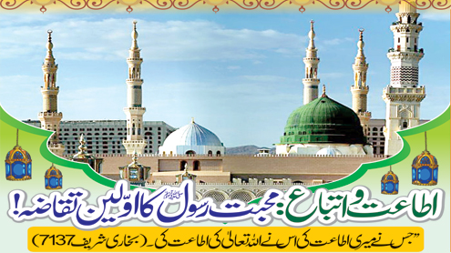 اطاعت واتباع: محبت رسولﷺ کا اوّلین تقاضہ! ’’جس نے میری اطاعت کی اس نے اللہ تعالی کی اطاعت کی۔ (بخاری شریف 7137)