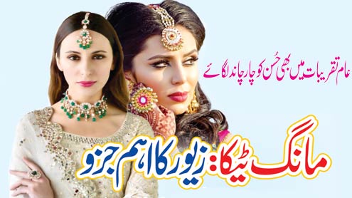 اگر کہا جائے کہ دلہن کی تیاری مانگ ٹیکا کے بغیر نا مکمل ہے تو غلط نہ ہو گا۔ عام طور پر دلہنیں بارات کے دن کیلئے مانگ ٹیکے کا انتخاب کرتی ہیں، تاہم اب مانگ ٹیکا دلہن کی جیولری کے علاوہ بہنوں اور کزنز کی جیولری کا بھی لازمی جزو نظر آتا ہے جبکہ دلہنیں بارات کیلئے زیادہ تر ماتھا پٹی کا استعمال کرتی ہیں اور ولیمہ کیلئے مانگ ٹیکے کا انتخاب کرتی ہیں۔
