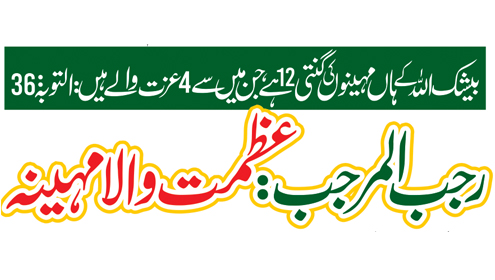 بیشک اللہ کے ہاں مہینوں کی گنتی 12 ہے ، جن میں سے 4 عزت والے ہیں : التوبہ : 36۔ رجب المرجب : عظمت والا مہینہ