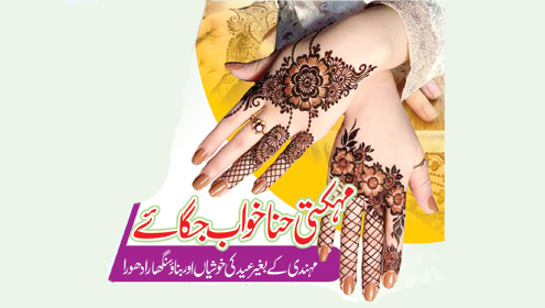 مہندی کے بغیر بنائو سنگھار ادھور رہتا ہے۔ عیدالفطر ہو یا عیدالاضحیٰ، خواتین کیلئے عید کی خوشیاں جہاں میک اپ اور خوبصورت لباس کے بنا ادھوری لگتی ہیں۔ اسی طرح سادہ ہتھیلیاں بھی جچتی نہیں ہیں۔ عموماً خواتین مہندی لگانے سے ہچکچاتی ہیں ۔ بڑی بزرگ خواتین بہوئوں، بیٹیوں کو مہندی رچانے کی تاکید کرتی ہیں کہ یہ سنت نبوی ﷺ بھی ہے اور مشرقی روایتوں کا حسن بھی ہے۔ عید اپنے مکمل لوازمات اور رواجوں کے ساتھ ہی منائی جاتی ہے ان میں ایک رواج چاند رات کو مہندی لگانا بھی ہے۔