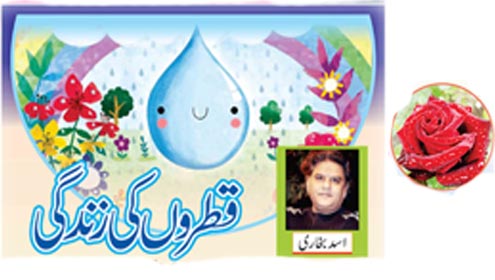 گول مٹول قطرے ہوا میں رئوئی کی طرح بادلوں پر آہستہ آہستہ حرکت کررہے تھے ۔کچھ نے اپنی آنکھیں بند کی ہوئی تھیں،کچھ اُونگھ رہے تھے اور کچھ آسمان کے نظارے کر رہے تھے۔ انہیں اپنا وجود بہت اچھا لگ رہا تھا اور جب وہ زمین کی طرف دیکھتے تواُن کا دل نیچے جانے کو نہیں کرتا ۔بس اُن کا دل کرتا کہ ہم یوں ہی بادلوں پر تیرتے رہیں۔ اُن میں ایک قطرہ ایسا بھی تھا جو نیچے جانا چاہتا تھا اور وہ دیکھنا چاہتا تھا کہ زمین پر کیا ہے ۔
