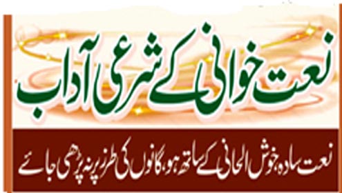 ٭…نعت خوانی کی محافل کو نمود و نمائش کا ذریعہ نہ بنایا جائے، نمازوں کی ادائیگی کا خاص خیال رکھا جائے، محافلِ نعت کے شرکاء باوضو ہو کر اور سروں کو ڈھانپ کر محافلِ نعت میں شریک ہوں اور دورانِ محفل مودّب ہو کر بیٹھیں۔