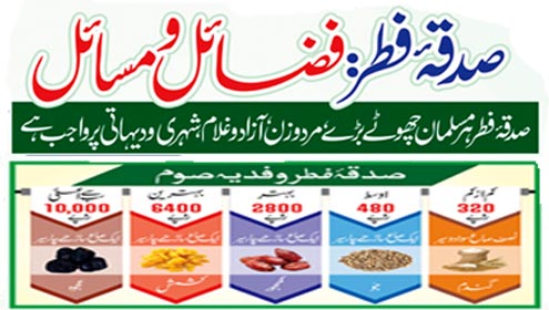 صدقہ:فطر:فضائل و مسائل