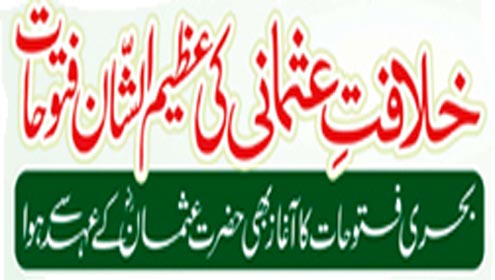 بحری فتوحات کا آغازبھی حضرت عثمانؓ کے عہد خلافت سے ہوا، حضرت عمرفاروقؓ کی احتیاط نے مسلمانوں کو سمندری خطرات میںڈالنا پسند نہ کیا۔ ذوالنورینؓکی اولوالعزمی نے خطرات سے بے پرواہ ہوکر ایک عظیم الشان بیڑا تیار کرکے جزیرہ قبرص (سائپرس) پر اسلامی عَلَم بلند کیا اور بحری جنگ میں قیصر روم کے بیڑے کو جس میں پانچ سو جنگی جہاز شامل تھے، ایسی شکست دی کہ پھر رومیوں کو کبھی بحری حملہ کی ہمت نہ ہوئی۔