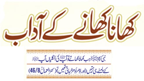 2:۔ کھانا ہمیشہ اپنے سامنے سے کھانا چاہیے ، پورے برتن میں ہاتھ گھمانا اور دوسرے کے منہ کے سامنے سے کھانا ٹھیک نہیں۔ حضرت جعفر بن عبد اللہ بن حکم بن رافع ؒ کہتے ہیں کہ ’’ میں بچہ تھا، کبھی اِدھر سے کھارہا تھا ، کبھی اُدھر سے۔ حضرت حکمؓ مجھے دیکھ رہے تھے۔ اُنہوں نے فرمایا: ’’ اے لڑکے! ایسے نہ کھاؤ جیسے شیطان کھاتا ہے! حضرت نبی اکرمﷺ جب کھانا کھاتے تھے تو آپﷺ کی اُنگلیاں آپ ﷺ کے سامنے ہی رہتی تھیں‘‘(یعنی اِدھر اُدھر سے نوش نہیں فرماتے تھے ) (کنز العمال: 8/46)۔