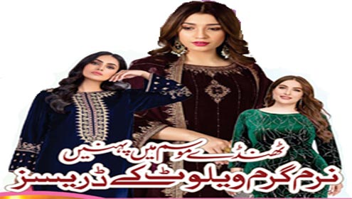 موسم سرما کے ملبوسات میں ویلوٹ کو خاص اہمیت حاصل ہے ۔ ویلوٹ کے ملبوسات خوبصورتی اور نزاکت سے بھرپور ہونے کے ساتھ ساتھ سردی سے تحفظ بھی فراہم کرتے ہیں۔ گہرے رنگوں پر نفیس کڑھائی اور آنچل اور دامن پر لگے نازک اسٹونز ویلوٹ ملبوسات کو بارونق اور جاذب نظر بنا دیتے ہیں۔ اگر آپ بھی جدید فیشن کے مطابق ویلوٹ کا لباس تیار کروانا چاہتی ہیں تو اپنی شخصیت کے مطابق رنگ کا انتخاب کریں۔ ویلوٹ پر گہرے رنگ زیادہ خوبصورت لگتے ہیں لہٰذا آپ سیاہ ، سبز یا وائلٹ رنگ سے منفرد اور اچھوتا احساس حاصل کر سکتی ہیں۔