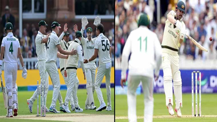 جبکہ کینگروزنے دوسری اننگزمیں 8وکٹوں کے نقصان پر144 رنزبناکر مجموعی طورپر218رنزکی برتری حاصل کرکے میچ میں اپنی گرفت مضبوط کرلی ہے ، دوسرے روز کھیل کے آغاز پر جنوبی افریقہ نے 4 وکٹوں کے نقصان پر جب دوبارہ بلے بازی شروع کی تو کپتان ٹمبا باؤما اور ڈیوڈ بیڈنگھم کے درمیان 64 رنز کی پارٹنر شپ کے بعد پروٹیز کو کچھ امید ضرور ملی، تاہم 94 کے مجموعی سکور پر جب کپتان ٹمبا باؤما 36 رنز بنا پیٹ کمنز کا شکار ہوئے تو اس کے بعد جنوبی افریقی بیٹرز کینگروز کے سامنے زیادہ دیر تک مزاحمت کرنے میں ناکام رہے اور پوری ٹیم صرف 138 رنز بنا کر پویلین واپس لوٹ گئی۔آسٹریلیا کی جانب سے کپتان پیٹ کمنز نے 28 رنز دے کر 6 وکٹیں اپنے نام کیں، میچل سٹارک 2 اور جوش ہیزل ووڈ ایک وکٹ حاصل کرنے میں کامیاب رہے ۔آج تیسرے روزہی میچ کافیصلہ ہونے کاقوی امکان ہے ۔