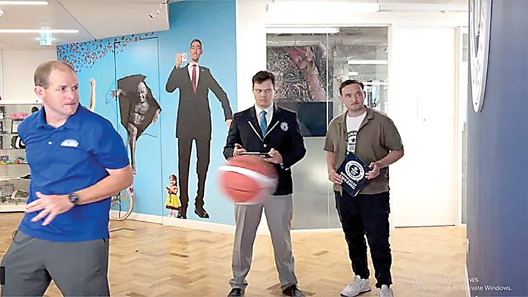 باسکٹ بال پشت کی جانب پھینکنے اور پکڑنے کا نیا ریکارڈ